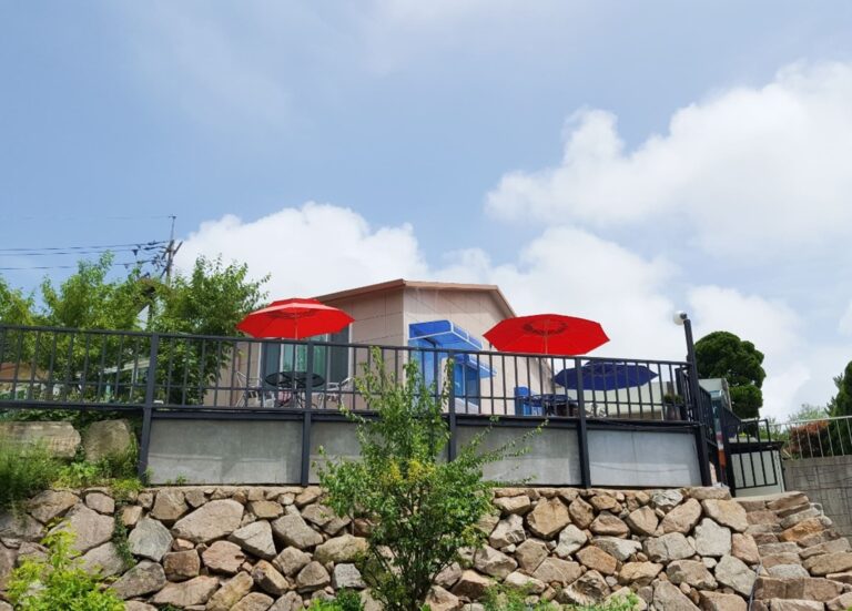 숙소 작은방 문만 열면 바로 연결된 편리한 단독 바베큐장, 마당, 데크, 평상 등 모두 1일 1팀만 예약되어 이용하십니다.