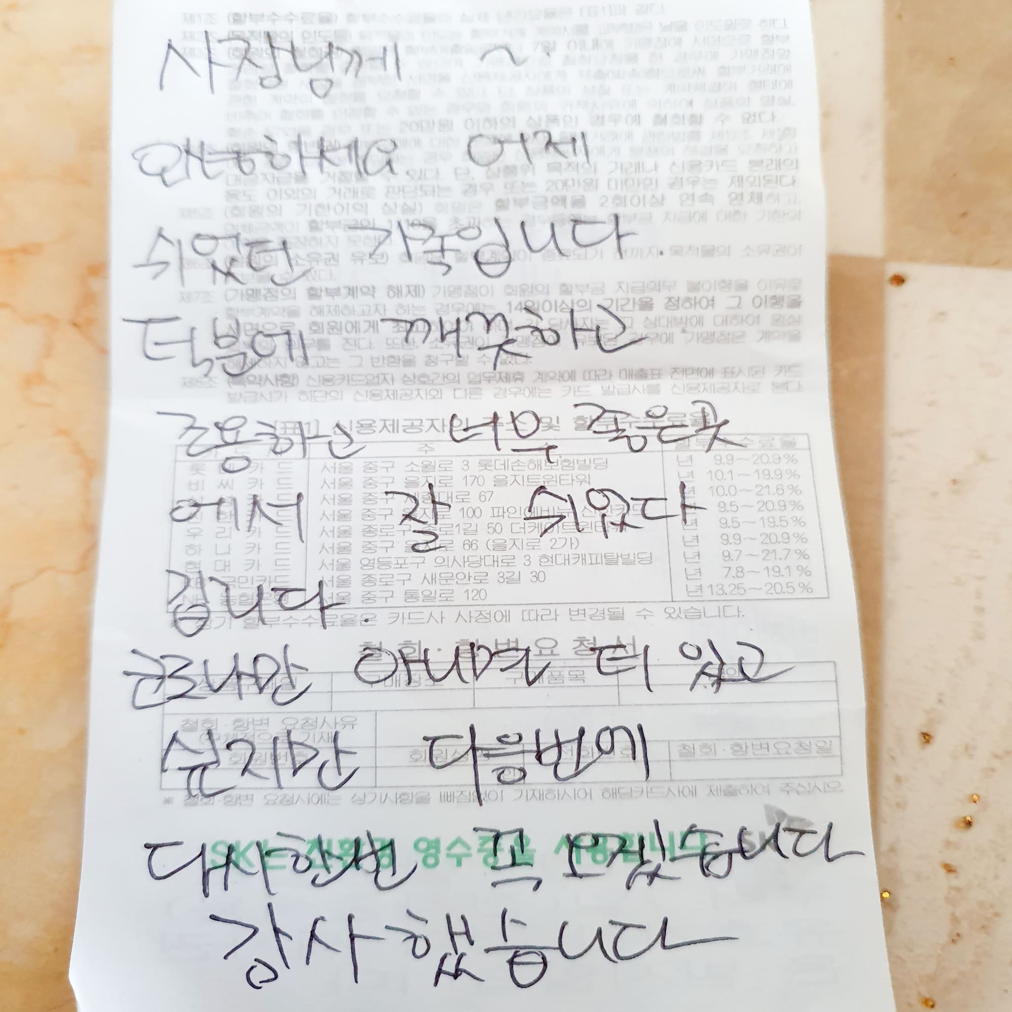 21.07 종이가 없어 영수증에 남기고간 편지에 감동했습니다 더좋은펜션만들께요^^